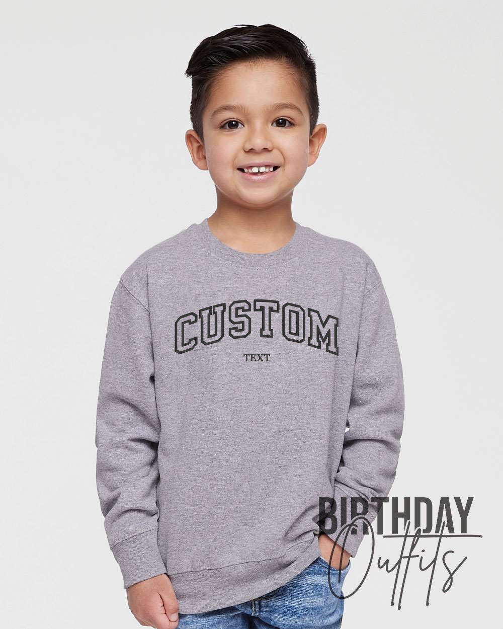 KIDS Custom Outlined Embroidered Varsity Crewneck, Embroidery Crewneck, Embroidered Sweatshirt, university sweaters, personalized sweatshirt