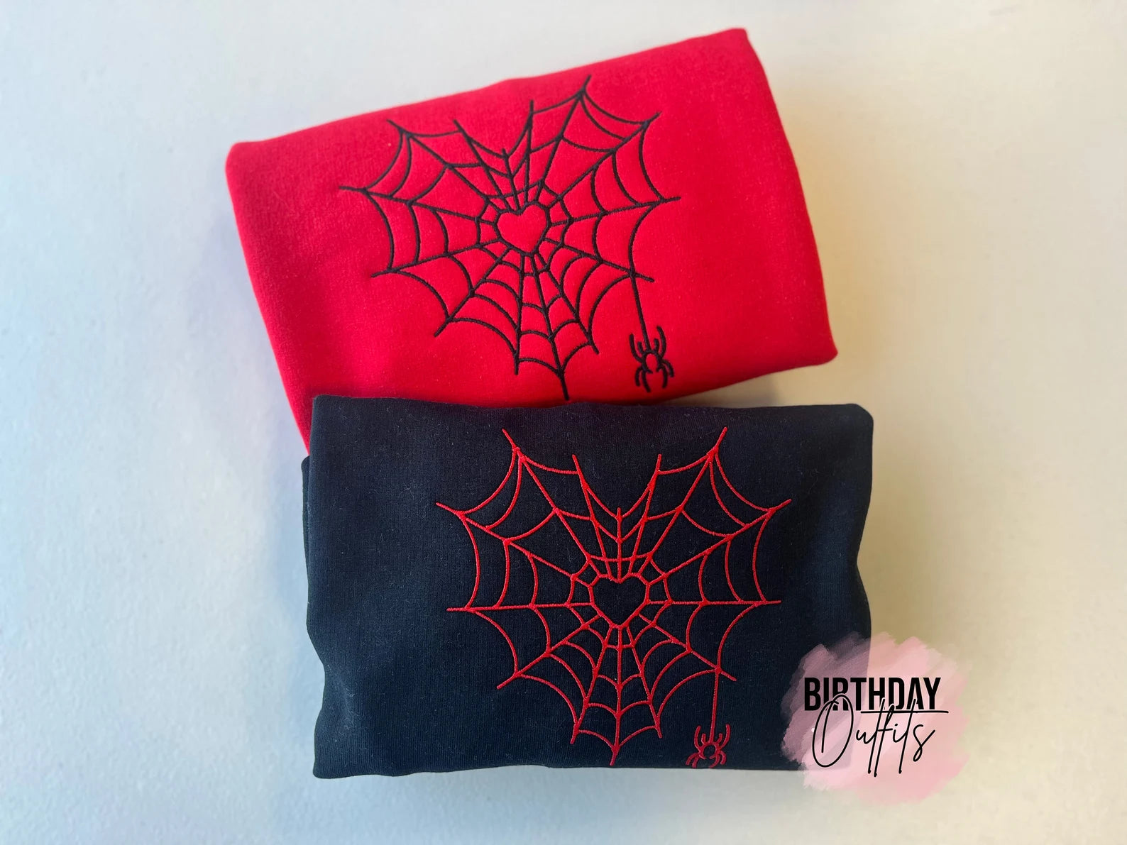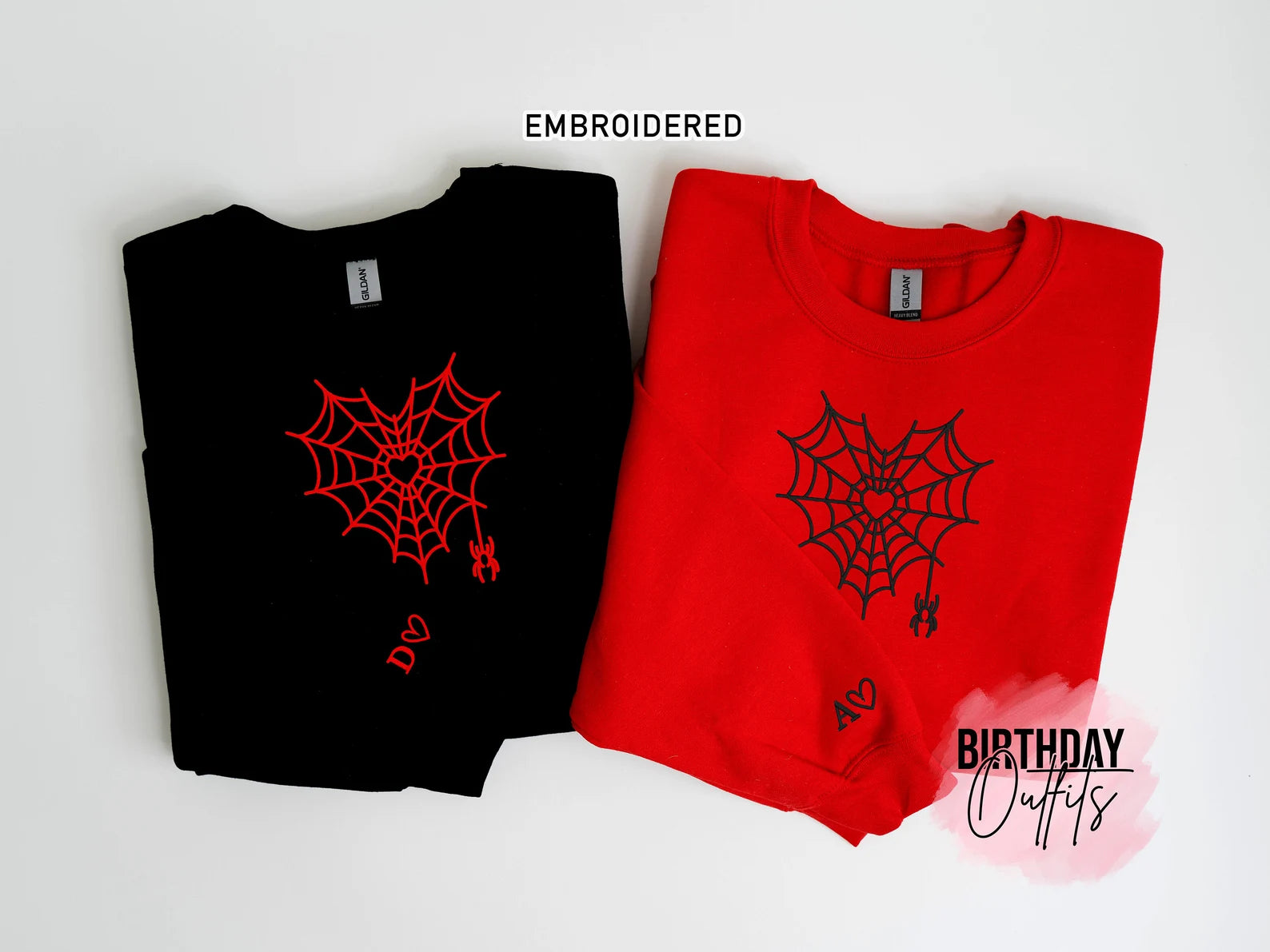 Spider Web Heart Matching Valentine's Day Embroidered Sweatshirts, Couple matching sweatshirts, Best Valentine's Gifts